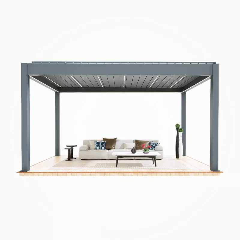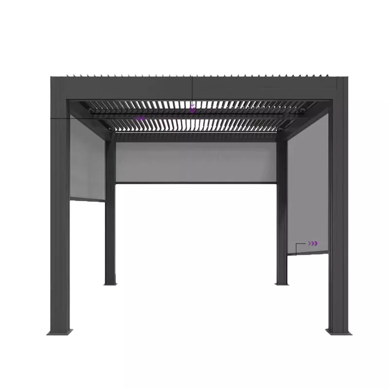 Courtyard Intelligent Pavilion (3000×3000mm): 60×60mm sütunlar, temperli şüşə dam + ağıllı günəş kölgəsi, şəxsi həyətlər üçün uyğundur;